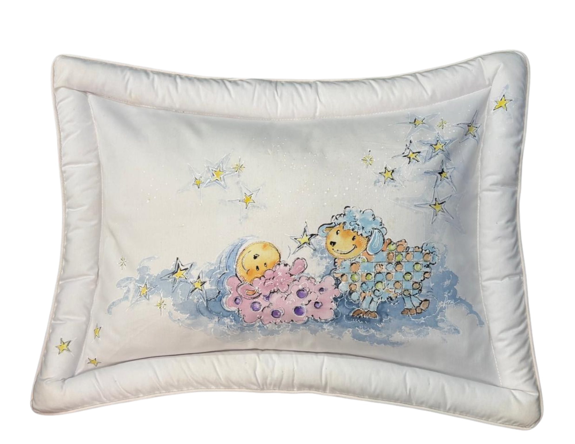 Design exclusivo da artista Eliane de Pacheco Palácios, que traz charme e personalidade ao travesseiro. O travesseiro apresenta uma borda acolchoada que proporciona proteção extra e um acabamento refinado. Ideal para decorar o quarto do bebê com estilo e acolhimento, combinando qualidade e arte em um só produto. Sua manutenção é prática graças à possibilidade de lavagem à máquina, preservando o tecido e as cores. Use no berço ou em ambientes do bebê para mais conforto e segurança. Conforto e proteção para o bebê, compre já e facilite o cuidado diário.